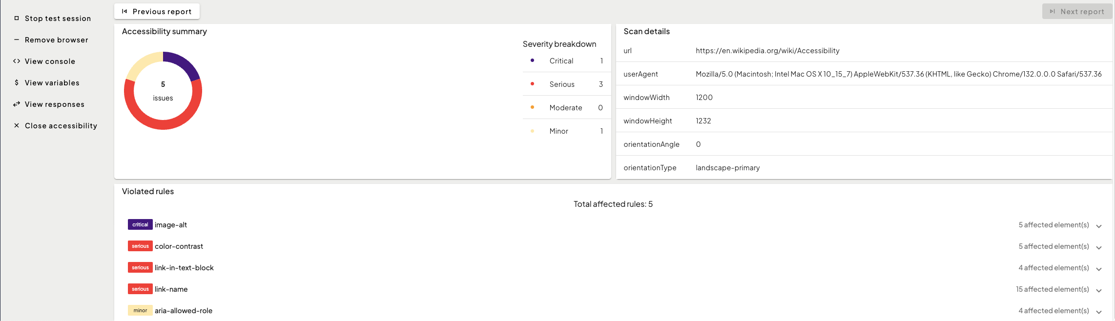 To check all available accessibility rules, refer to axe-core rule descriptions.