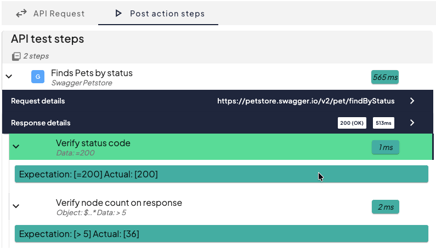 Post action steps are actions that are performed immediately after your API request has been sent.