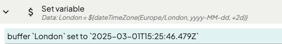 Example: Current date in London formatted as yyyy-MM-dd with 2 days extra.