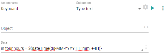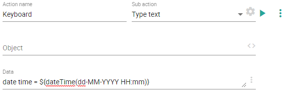 In the example below, the format is dd-MM-YYYY HH:mm to generate the current date and time.