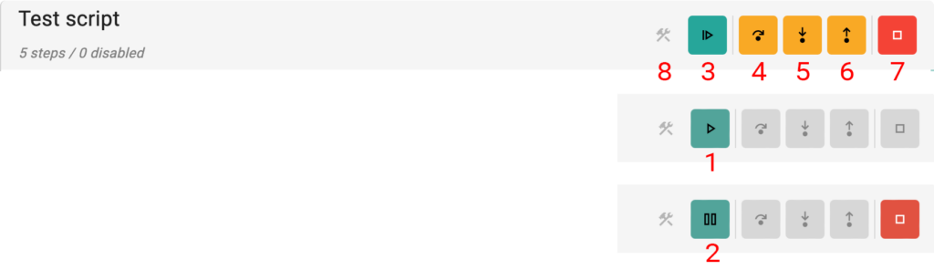 For debugging and checking your test you can use various built in buttons to have maximum control of the sequence you want to execute your teststeps.