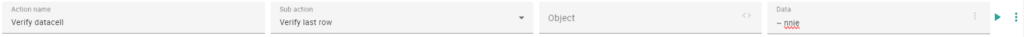 This verification work with Expected and Actual data. The actual value data is extracted from the given Object. The object is the columname, and the row is selected by the subaction. The expected value is provided in the Data field in your step, with an oparator.